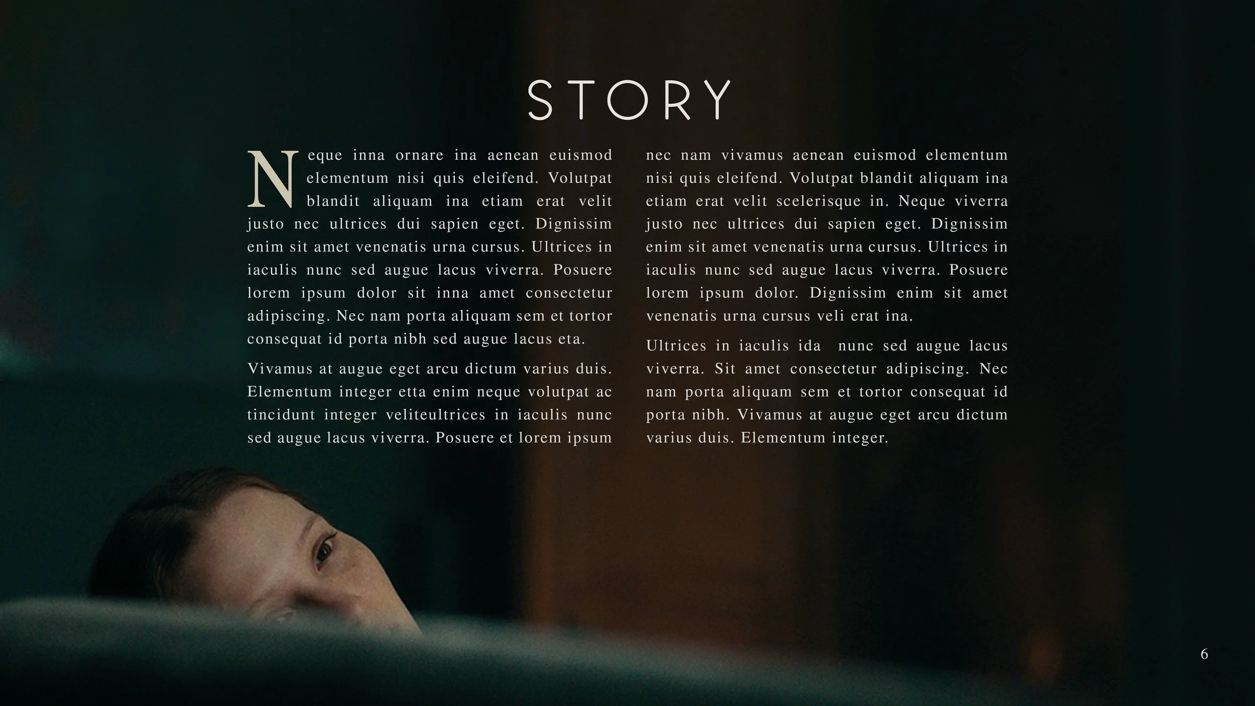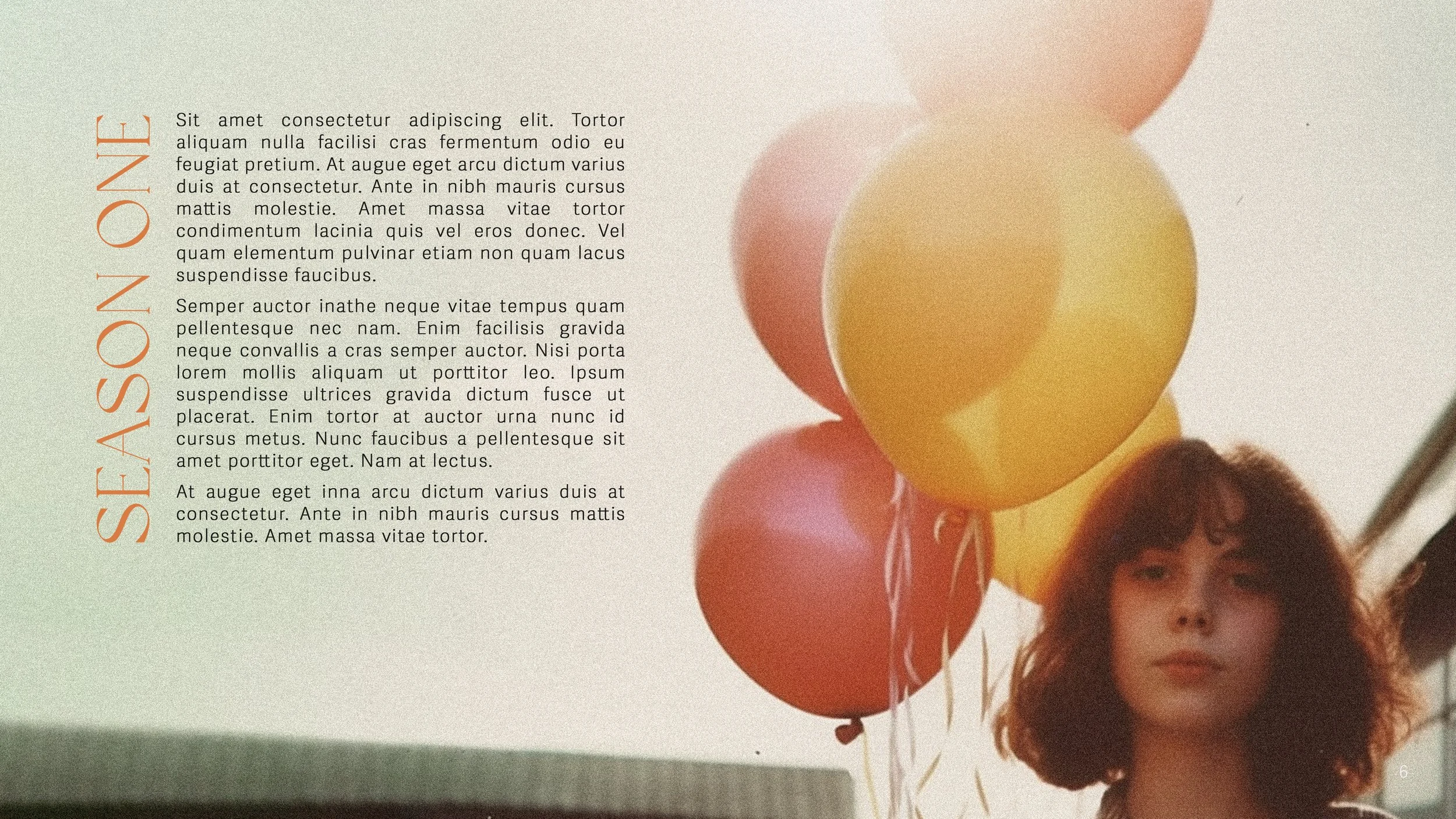 Your show’s story can be told with so much more than just words and images found online - font choices, colour palette, A.I. renderings, and other graphic elements can all enhance the world that you’ve envisioned. With experience working on decks for both independent creators and international production companies, I work with you to create a premium pitch deck that you can truly be proud of.
